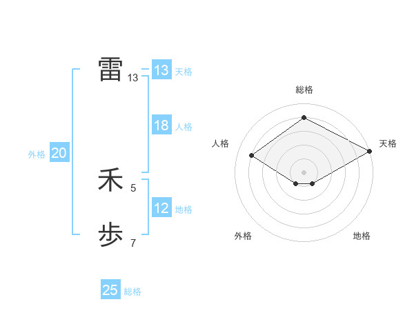 雷 禾歩さんを姓名の画数から五運を鑑定