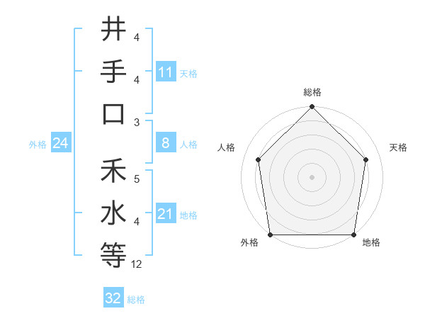 井手口 禾水等さんの総格は32画の5点!