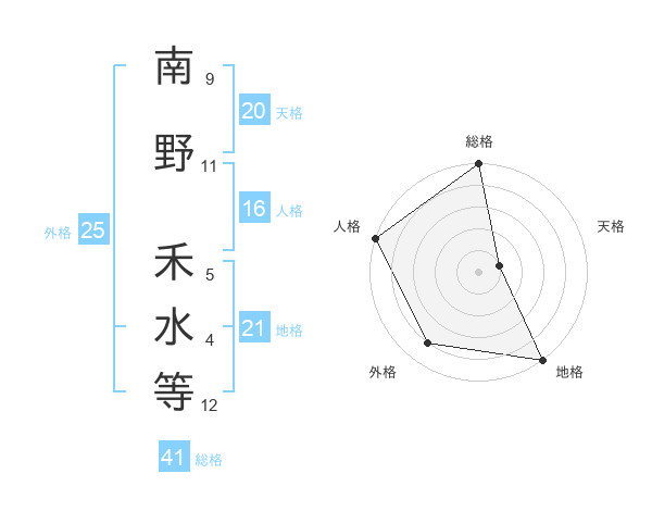 南野 禾水等さんを姓名の画数から五運を鑑定