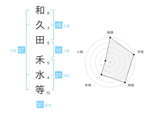 和久田 禾水等さんを姓名の画数から五運を鑑定
