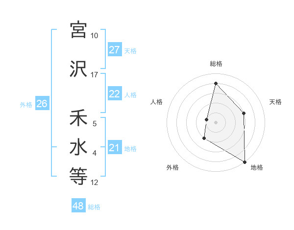 宮沢 禾水等さんを姓名の画数から五運を鑑定