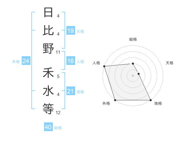 日比野 禾水等さんを姓名の画数から五運を鑑定