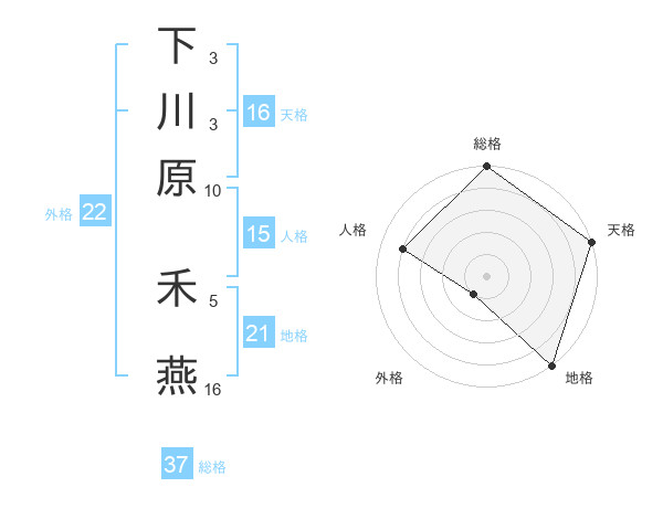 下川原 禾燕さんを姓名の画数から五運を鑑定