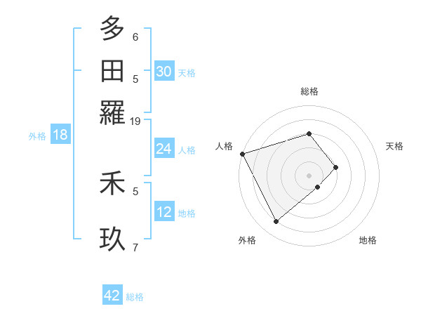多田羅 禾玖さんを姓名の画数から五運を鑑定