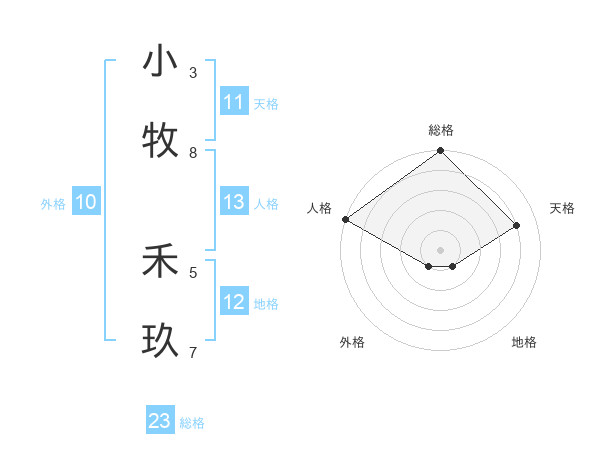 小牧 禾玖さんの総格は23画の5点!