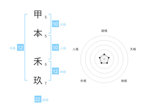 甲本 禾玖さんの総格は22画の1点!