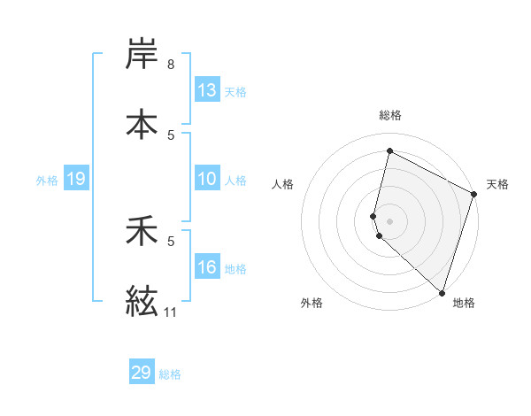 岸本 禾絃さんの総格は29画の4点!