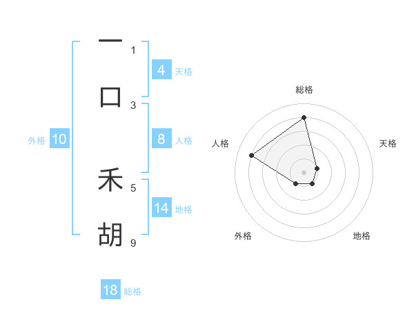 一口 禾胡さんの総格は18画の4点!