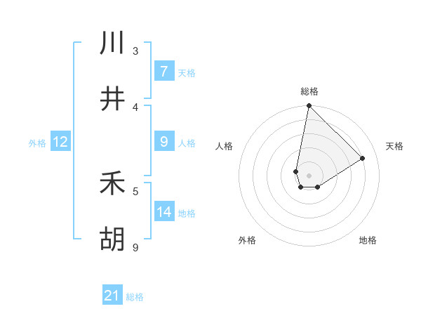 川井 禾胡さんの総格は21画の5点!
