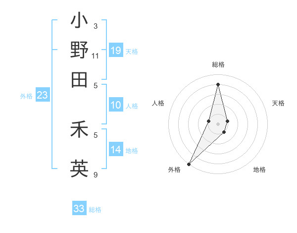 小野田 禾英さんを姓名の画数から五運を鑑定