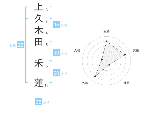 上久木田 禾蓮さんの総格は35画の4点!