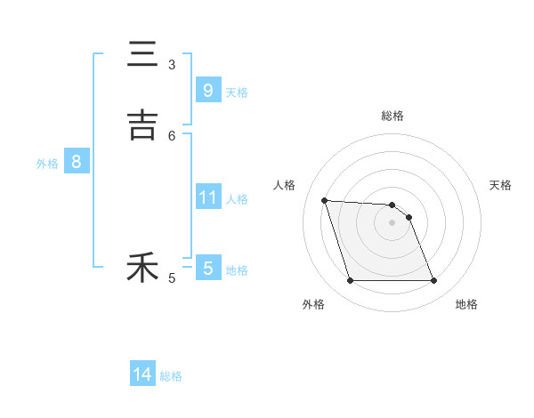 三吉 禾さんを姓名の画数から五運を鑑定