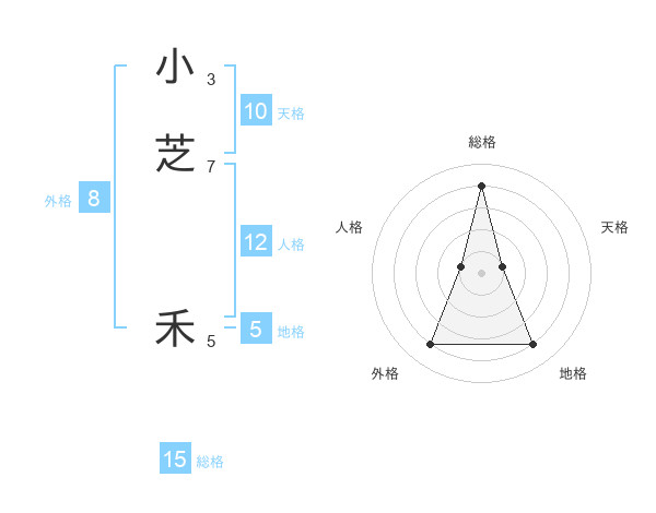 小芝 禾さんの総格は15画の4点!
