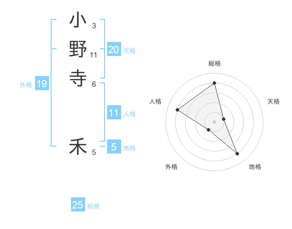 小野寺 禾さんの天格は20画の1点!