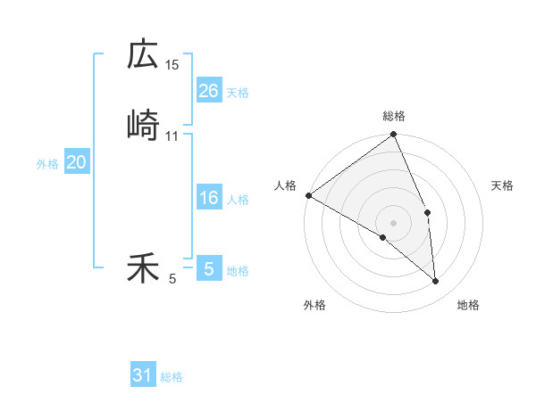 広崎 禾さんの総格は31画の5点!