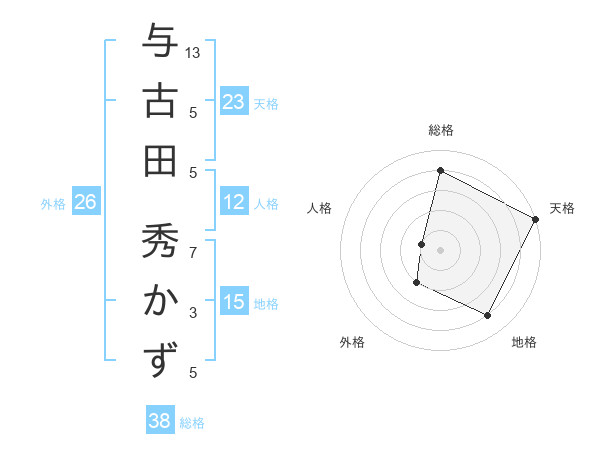 与古田 秀かずさんの総格は38画の4点!