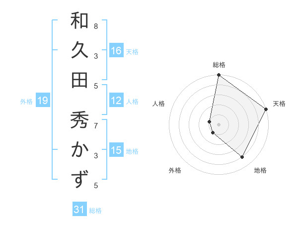 和久田 秀かずさんの総格は31画の5点!