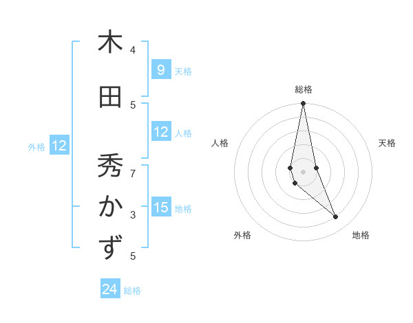 木田 秀かずさんを姓名の画数から五運を鑑定