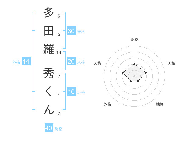 多田羅 秀くんさんの総格は40画の2点!