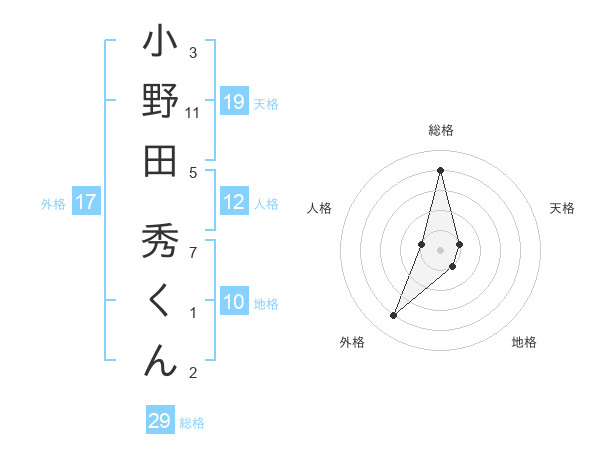 小野田 秀くんさんを姓名の画数から五運を鑑定