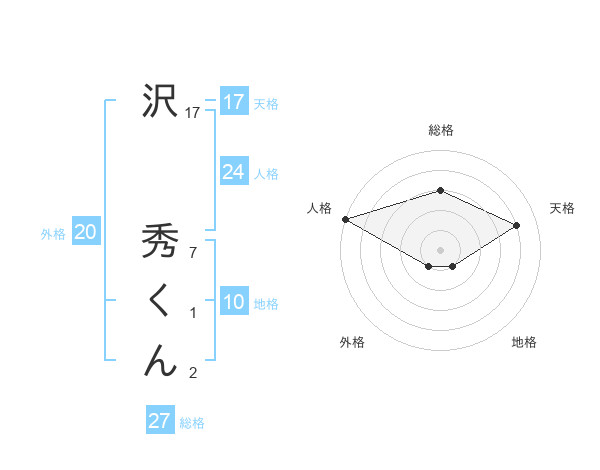 沢 秀くんさんを姓名の画数から五運を鑑定