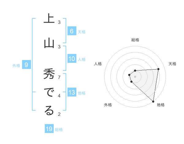 上山 秀でるさんを姓名の画数から五運を鑑定
