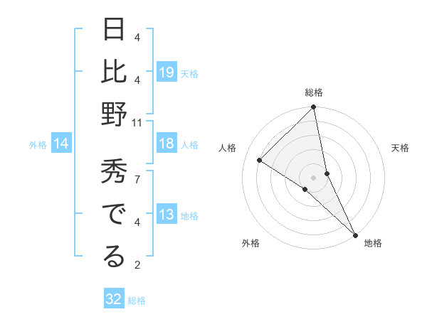 日比野 秀でるさんを姓名の画数から五運を鑑定