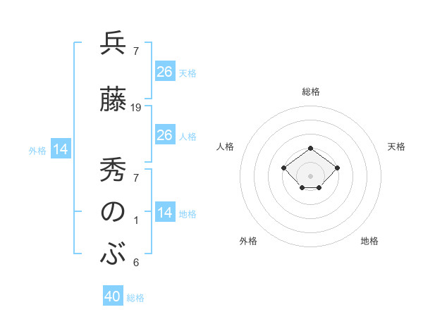 兵藤 秀のぶさんを姓名の画数から五運を鑑定