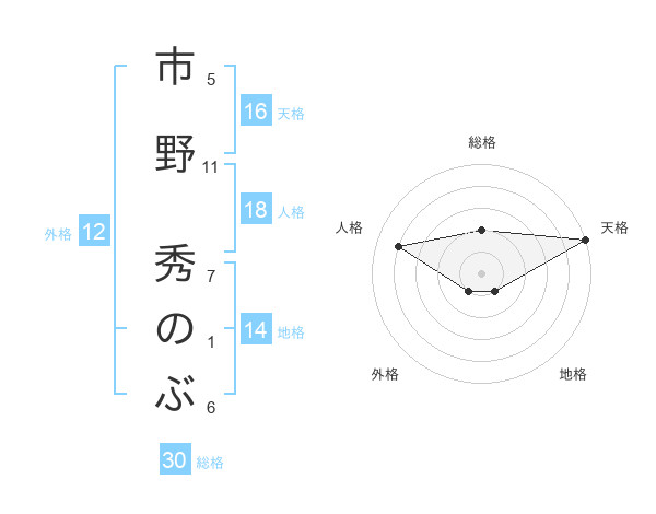 市野 秀のぶさんを姓名の画数から五運を鑑定