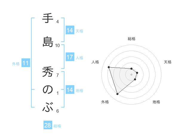 手島 秀のぶさんの天格は14画の1点!