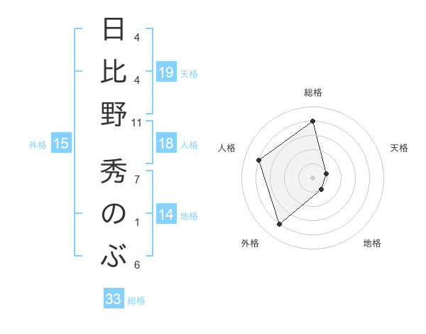 日比野 秀のぶさんを姓名の画数から五運を鑑定