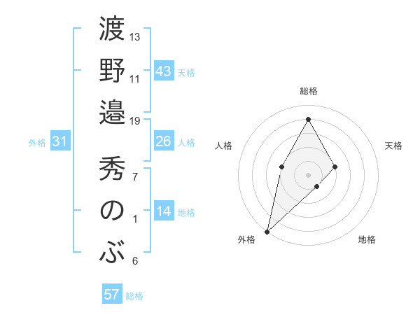 渡野邉 秀のぶさんを姓名の画数から五運を鑑定