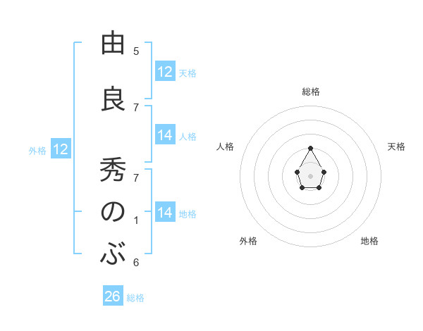 由良 秀のぶさんの天格は12画の1点!