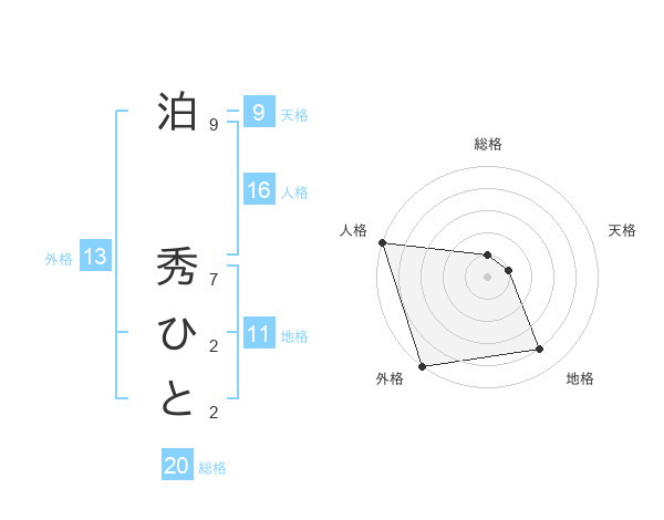 泊 秀ひとさんを姓名の画数から五運を鑑定