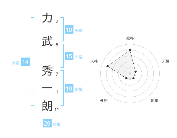 力武 秀一朗さんを姓名の画数から五運を鑑定