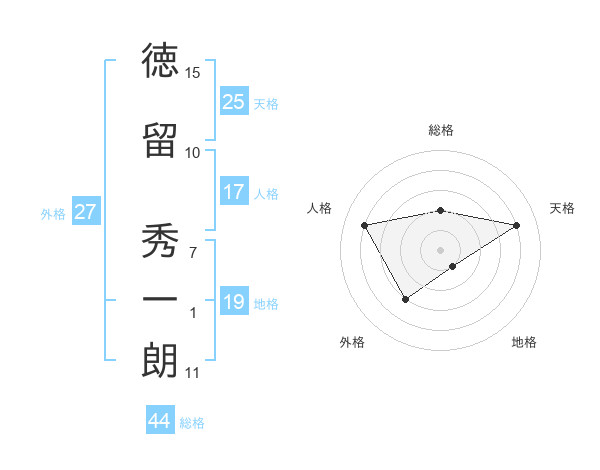 徳留 秀一朗さんを姓名の画数から五運を鑑定