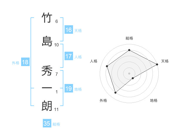 竹島 秀一朗さんの天格は16画の5点!