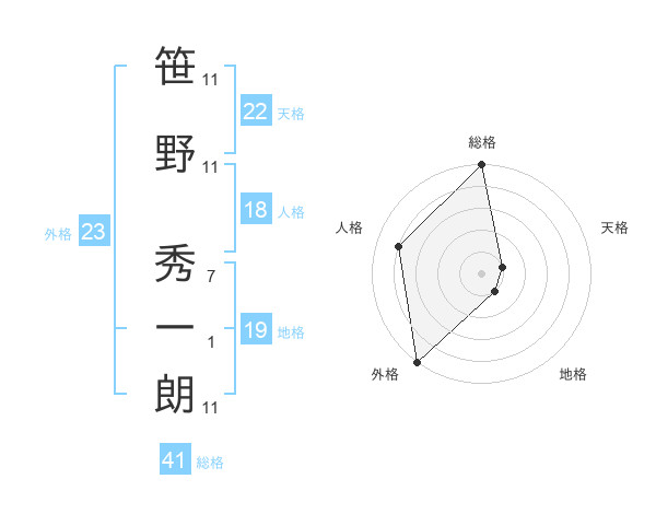 笹野 秀一朗さんの外格は23画の5点!