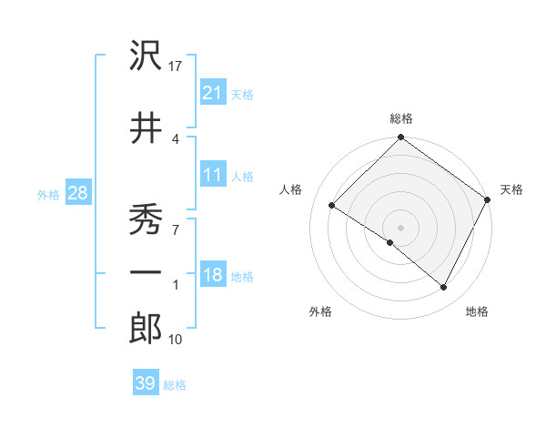 沢井 秀一郎さんを姓名の画数から五運を鑑定