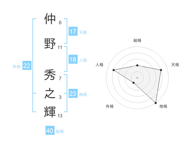 仲野 秀之輝さんを姓名の画数から五運を鑑定