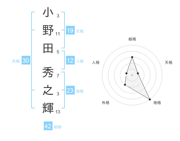 小野田 秀之輝さんを姓名の画数から五運を鑑定