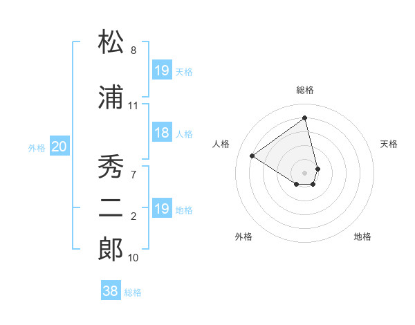 松浦 秀二郞さんの総格は38画の4点!