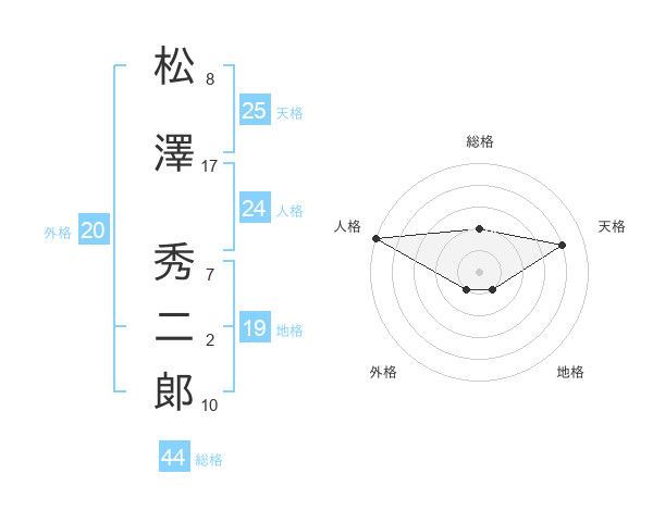 松澤 秀二郞さんの総格は44画の2点!