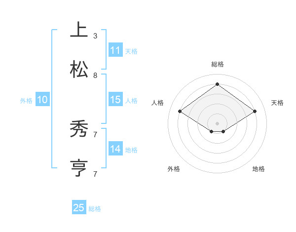 上松 秀亨さんを姓名の画数から五運を鑑定