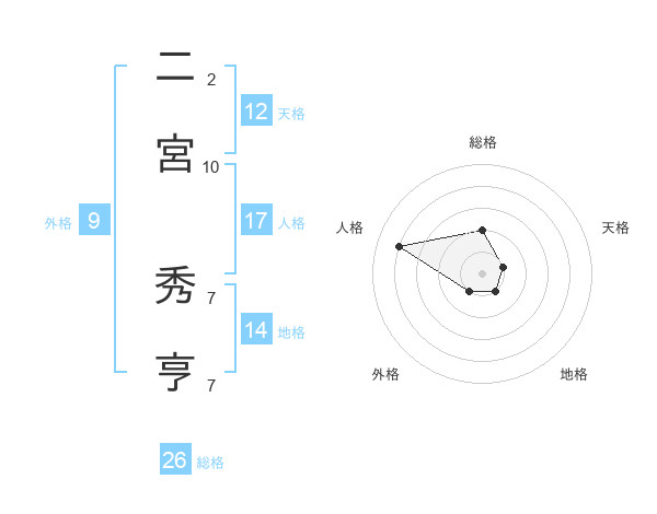 二宮 秀亨さんを姓名の画数から五運を鑑定