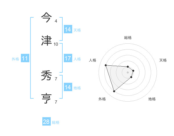 今津 秀亨さんを姓名の画数から五運を鑑定