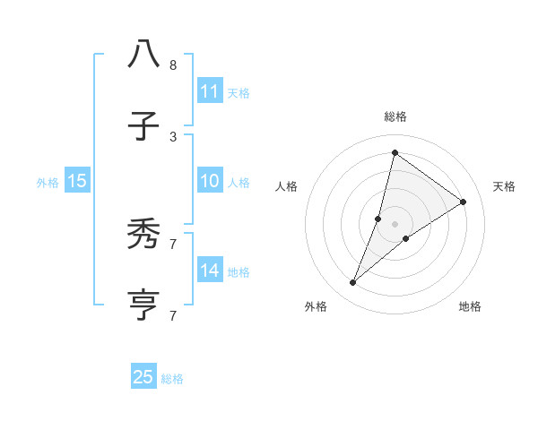 八子 秀亨さんの総格は25画の4点!