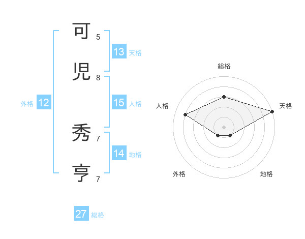 可児 秀亨さんの総格は27画の3点!