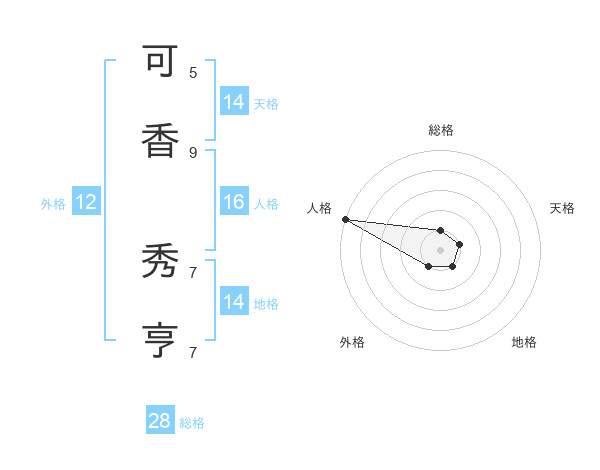 可香 秀亨さんの天格は14画の1点!