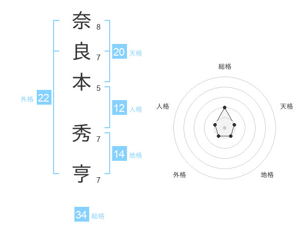 奈良本 秀亨さんを姓名の画数から五運を鑑定
